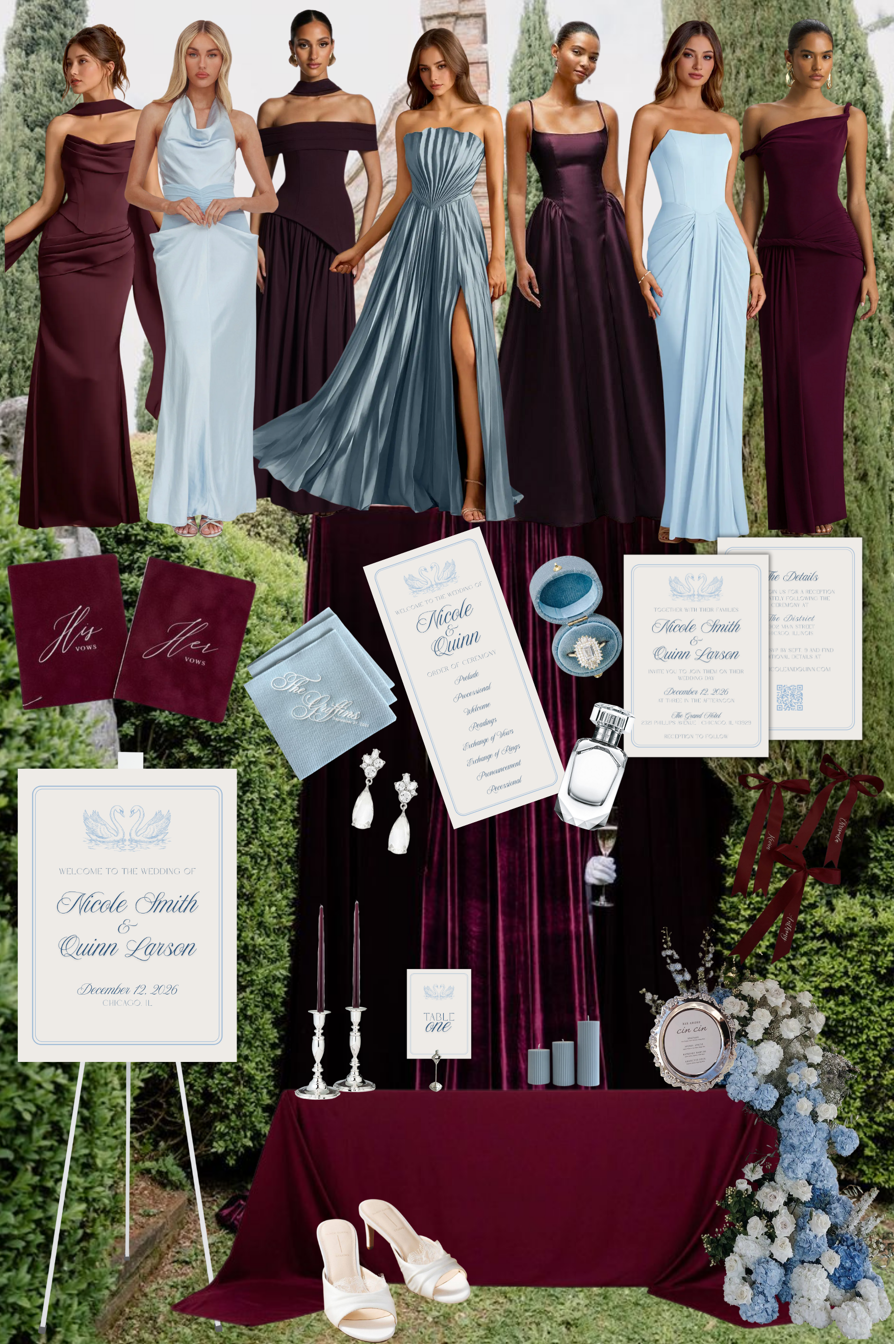Cool Blue Burgundy | Wedding Color Theme