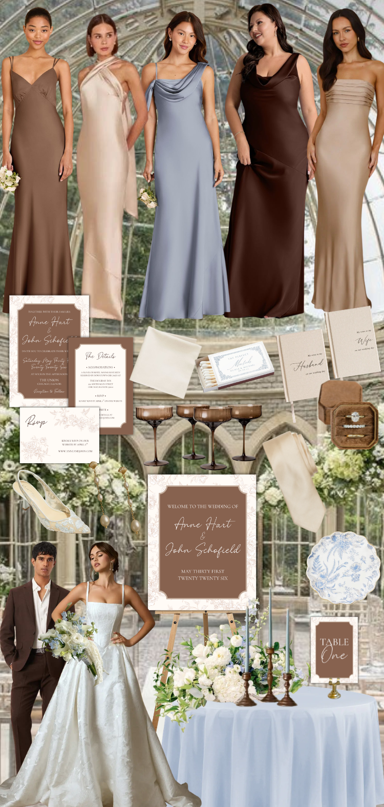 If you're dreaming of a wedding that feels both warm and refined, this brown and blue wedding theme is the perfect balance of cozy neutrals and soft elegance. This palette blends rich chocolate tones with muted dusty blues and creamy ivories to create a look that feels elevated, modern, and effortlessly romantic.