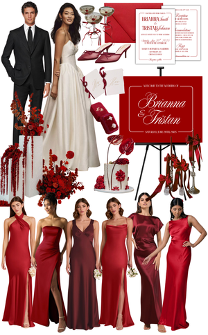 If you’re dreaming of an elegant fall wedding with warm, romantic tones—this mood board brings that vision to life. From satin bridesmaid dresses in shades of rust, peach, and gold to an ivory embroidered bridal gown and modern neutral-toned stationery, every detail here is curated to reflect the cozy richness of autumn. We’ve included everything from floral design inspiration and signage to a terracotta-tiered wedding cake and reception table details. Below, you’ll find all the exact product links so you can recreate this chic autumn wedding look with ease.