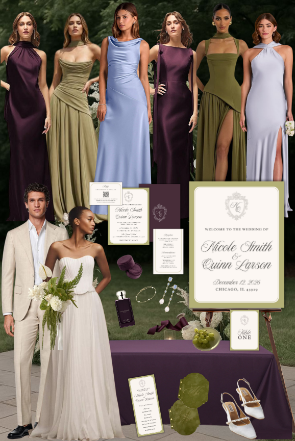 Olive Green Periwinkle Plum | Wedding Color Theme