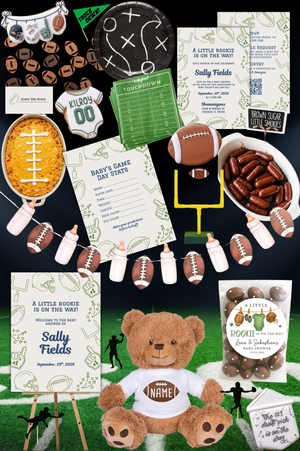 From the invitation to the décor, every element works together to create a cohesive, photo-worthy baby shower setup.
